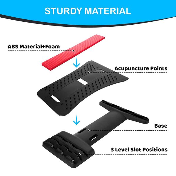 The back cracker level 3 has a total of 3 adjustment levels to adapt to different heights. The higher the back arch stretcher, the more back stretch you get.The Waistmate level 3 is sturdy and durable enough to safely support up to 220.5 lbs.